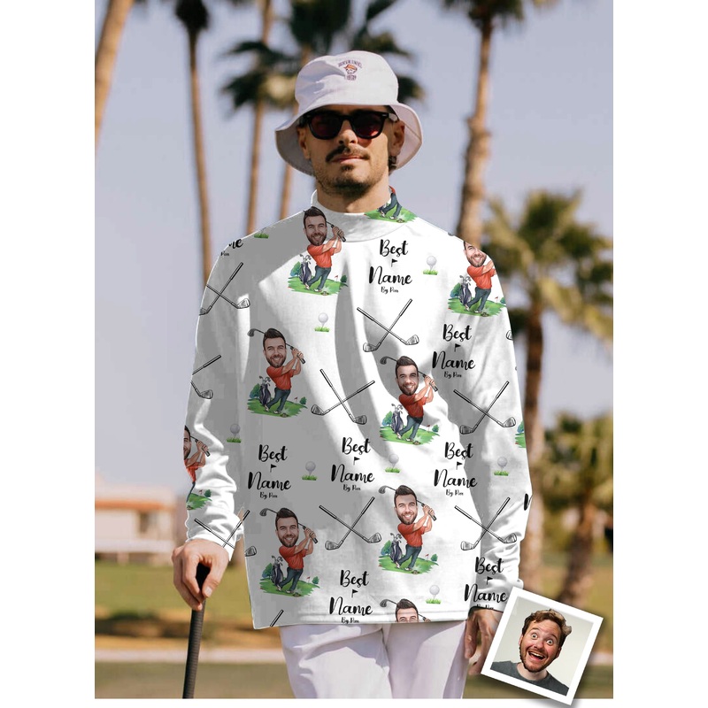 Men’s Custom Photo Face & Your Name Pullover High neck Long/Short sleeve T-Shirt