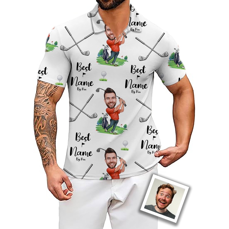 Men’s Custom Photo Face & Your Name V Neck Golf Polo Shirts