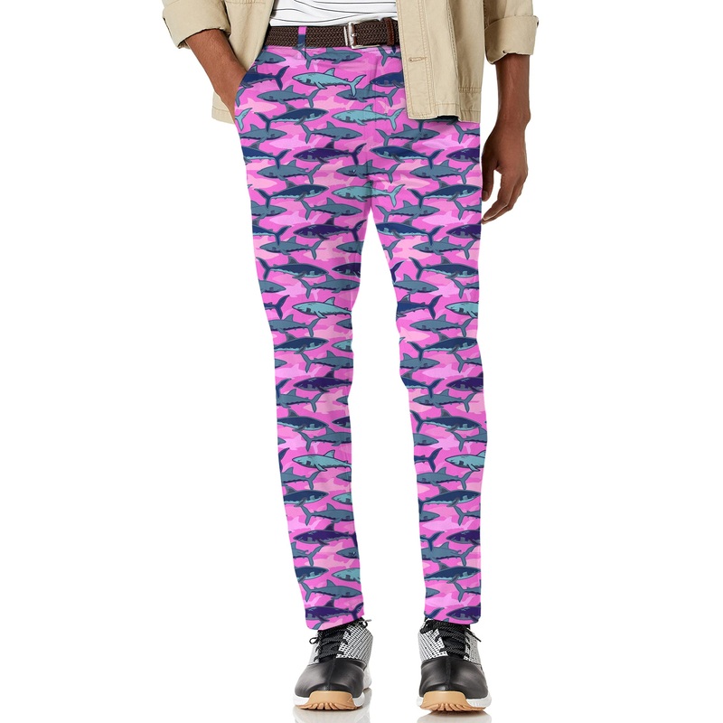Men’s Electric Sharks Pink Stretch Golf pants trousers