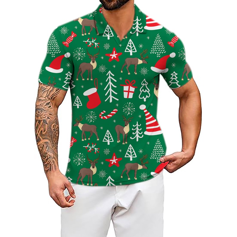 Men’s Elk deer Christmas V Neck Golf Polo Shirts