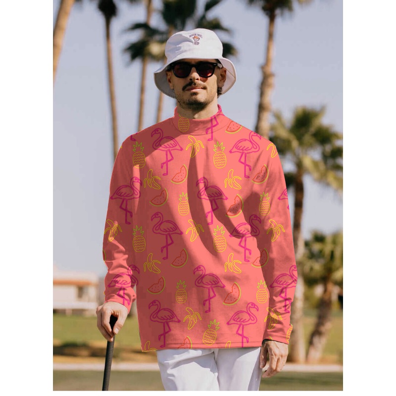 Men’s Fruity Flamingo Pullover High neck Long/Short sleeve T-Shirt