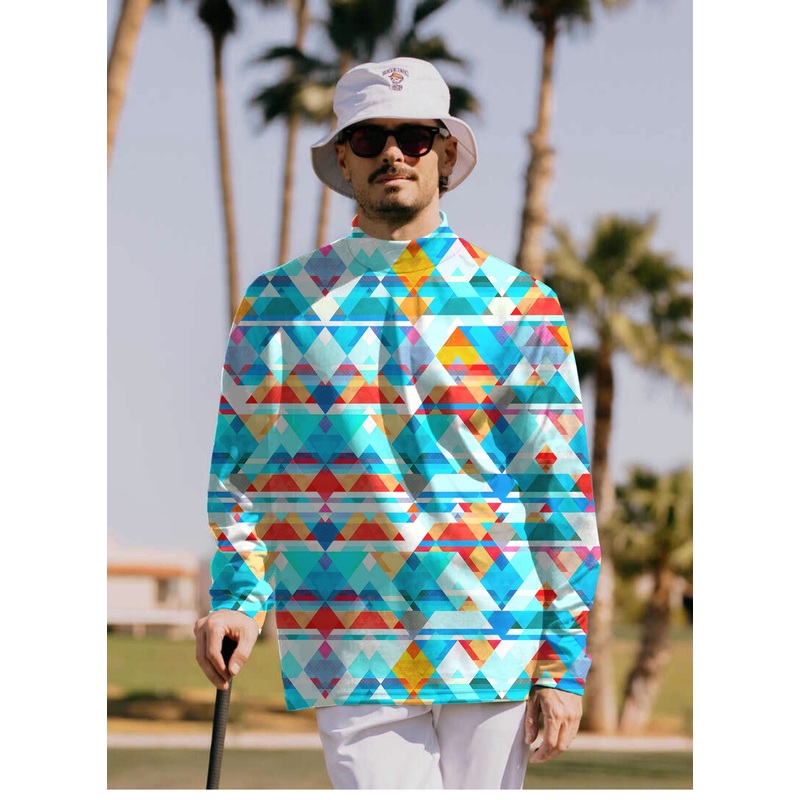 Men’s Geometric lattice Pullover High neck Long/Short sleeve T-Shirt