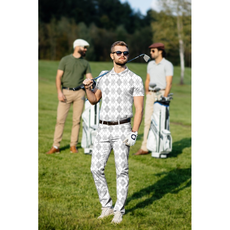 Men’s Golf Set Polo+Pants Argyle grey grid