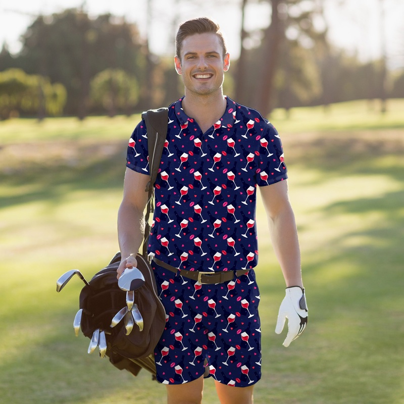 Men’s Golf Set Polo+Shorts red wine