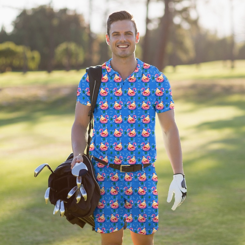 Men’s Golf Set Polo+Shorts Santa Pool Party