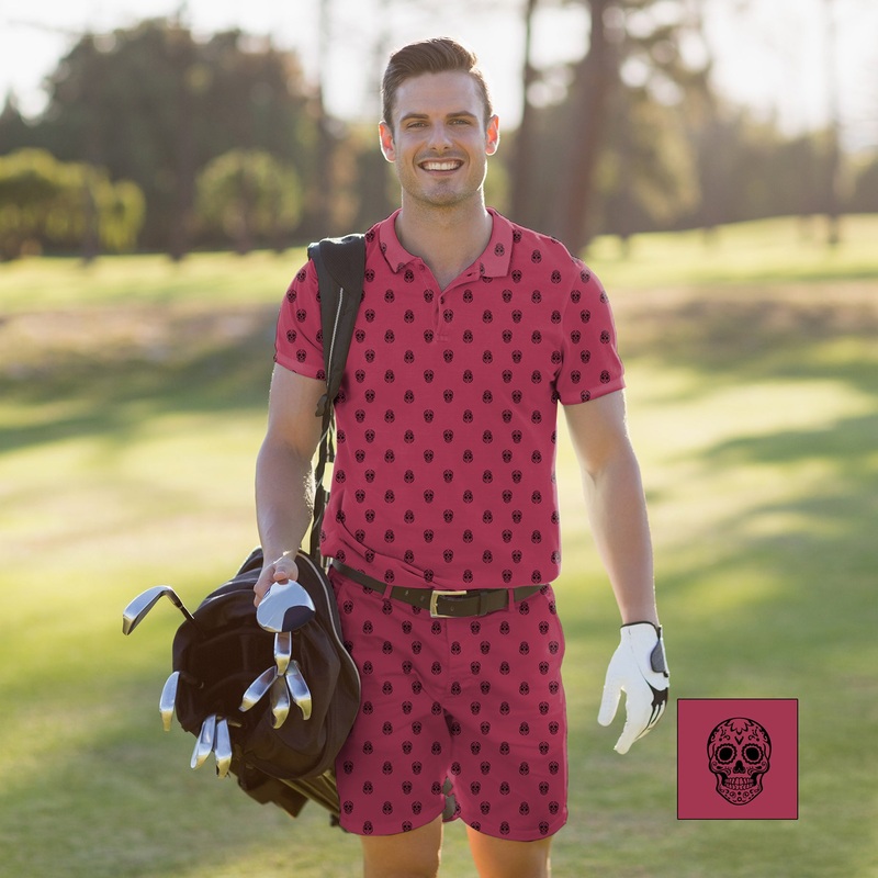 Men’s Golf Set Polo+Shorts Skull Custom The Background Color