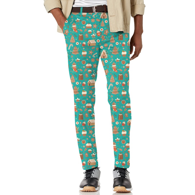 Men’s Green Christmas Candy House Stretch Golf Pants