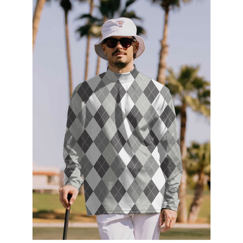 Men’s grey Argyle Pullover High neck Long/Short sleeve T-Shirt