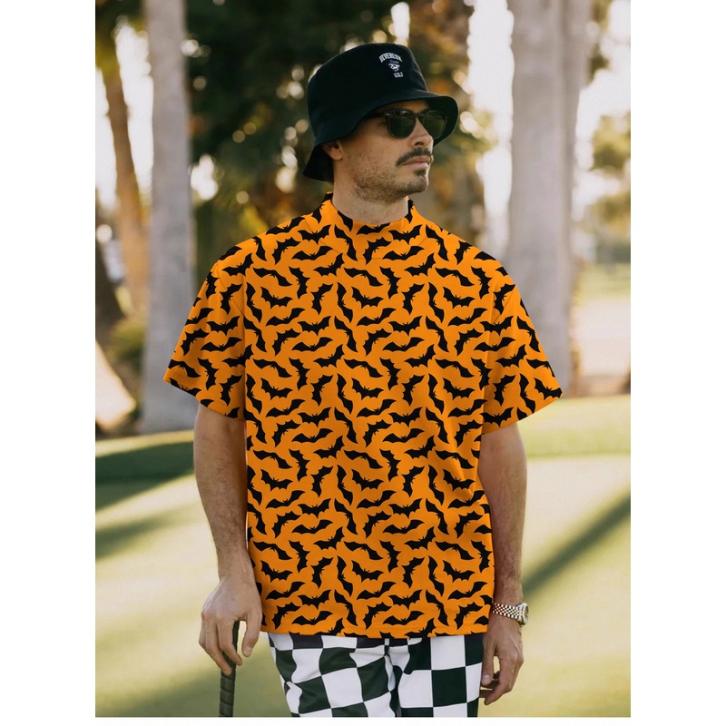 Men’s Halloween Bat Custom The Background Color Pullover High neck Long/Short sleeve T-Shirt