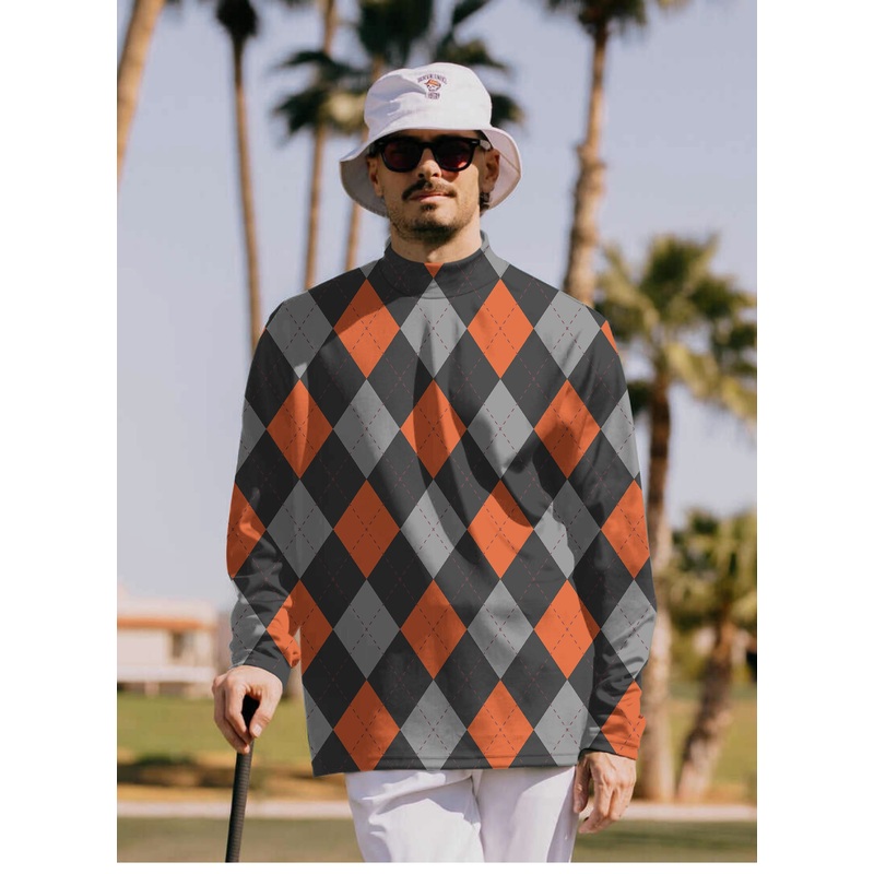 Men’s Halloween Black Red Argyle Pullover High neck Long/Short sleeve T-Shirt