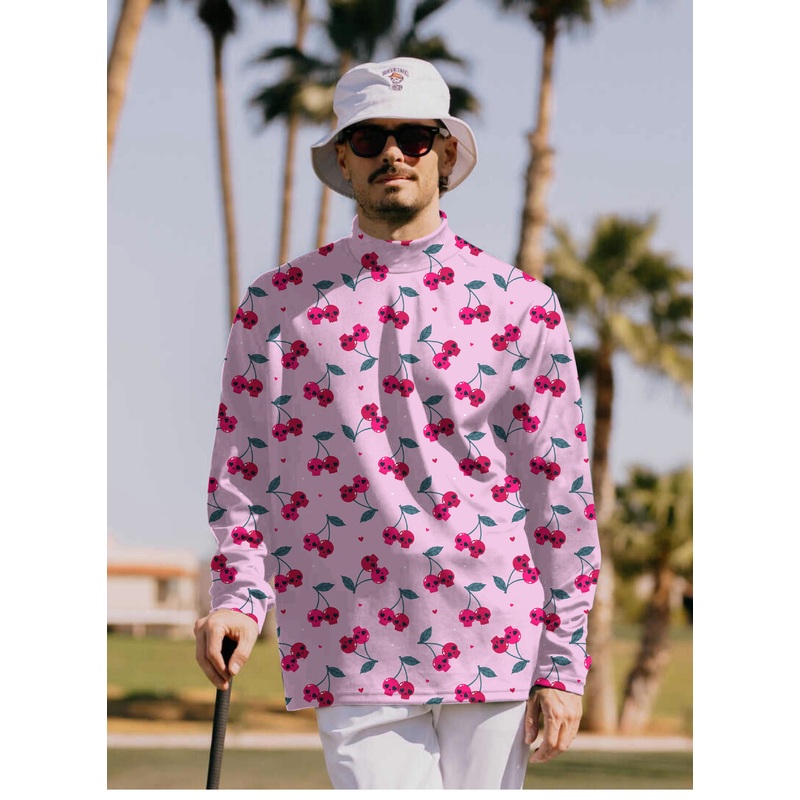 Men’s Halloween Cherry Skull Pullover High neck Long/Short sleeve T-Shirt