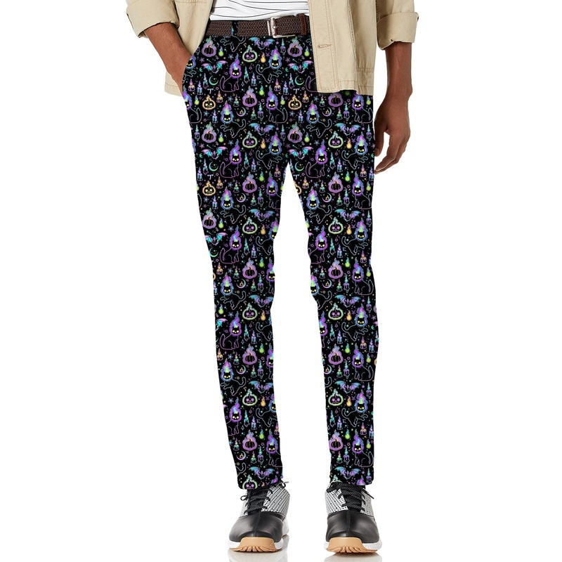 Men’s Halloween Ghost Pumpkin Cat Stretch Golf Pants