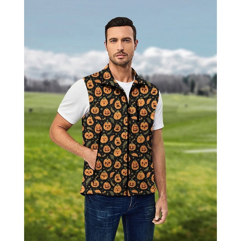 Men’s Halloween Kawaii Pumpkin Bones Lightweight Softshell Vest Sleeveless Jacket for Golf Windproof Waterproof