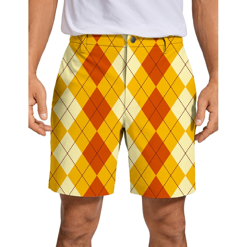 Men’s Halloween Light Yellow Red Argyle Golf Shorts