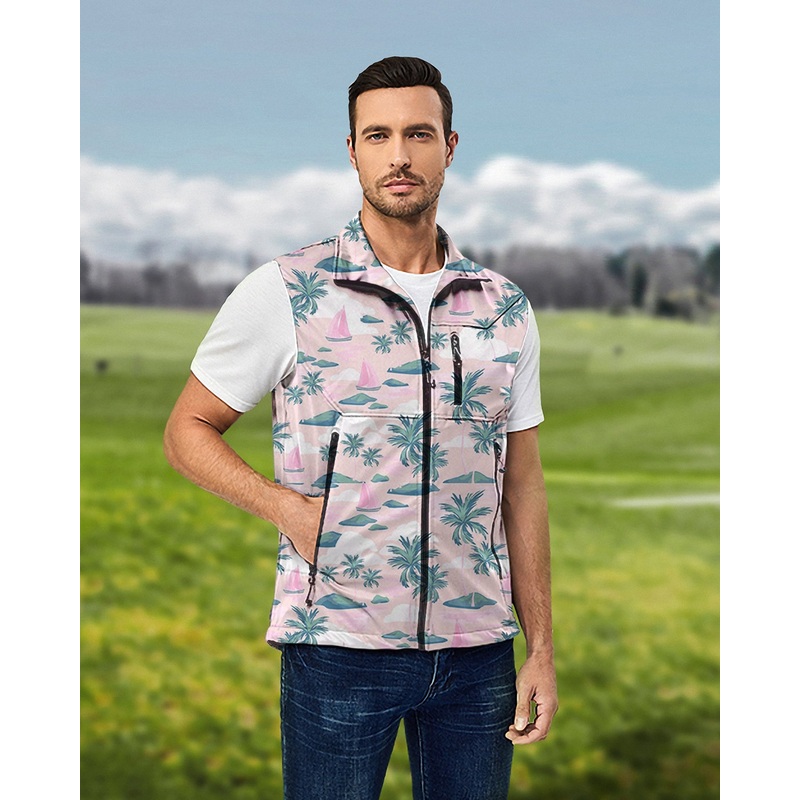 Men’s Island Time Lightweight Softshell Vest Sleeveless Jacket for Golf Windproof Waterproof