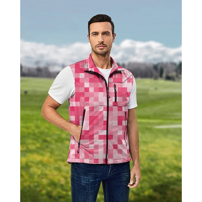 Men’s Light Red Pixel Big Lightweight Softshell Vest Sleeveless Jacket for Golf Windproof Waterproof