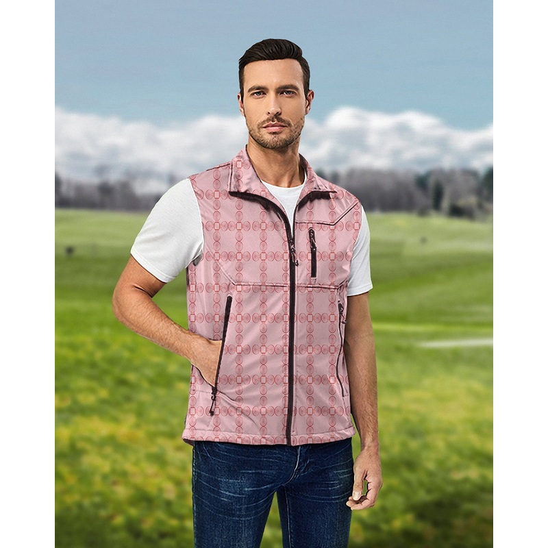 Men’s limited edition Pink geometry Lightweight Softshell Vest Sleeveless Jacket for Golf Windproof Waterproof