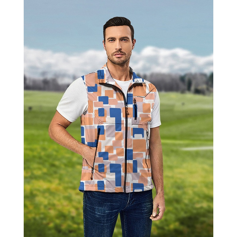 Men’s Mosaic Lightweight Softshell Vest Sleeveless Jacket for Golf Windproof Waterproof