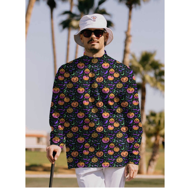 Men’s Neon Magical Pumpkin Pullover High neck Long/Short sleeve T-Shirt