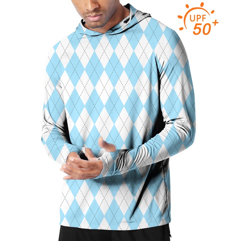 Men’s Outdoor Blue diamond grid Argyle Golf Sun Protection Slim Fit hoodies