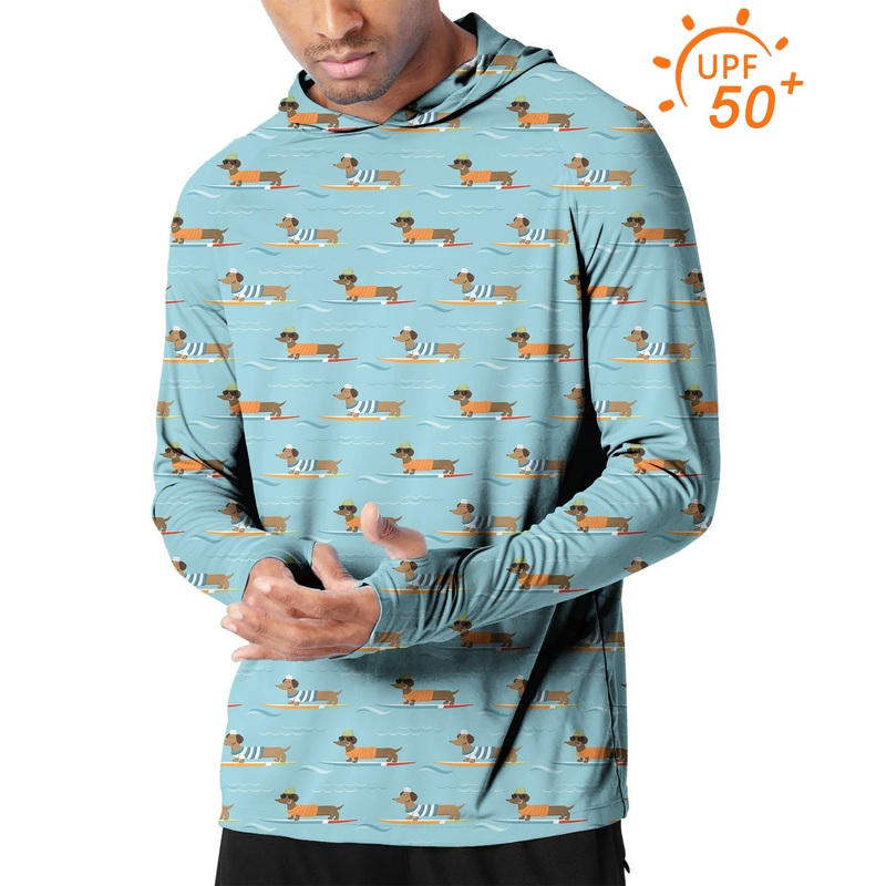 Men’s Outdoor Dachshund Surfing Golf Sun Protection Slim Fit hoodies