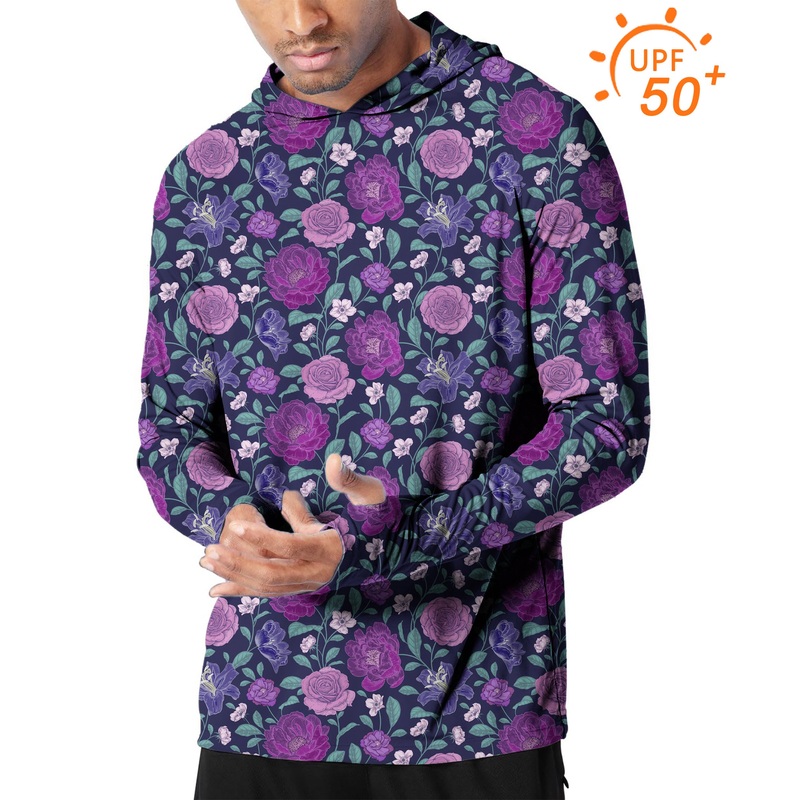 Men’s Outdoor Purple Floral Golf Sun Protection Slim Fit hoodies