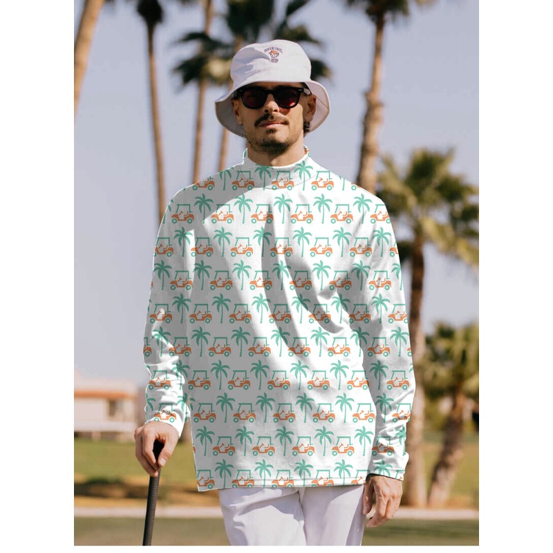 Men’s Palm trees and golf carts Pullover High neck Long/Short sleeve T-Shirt