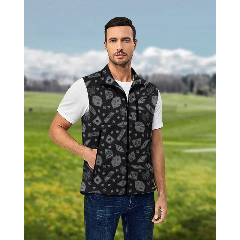 Men’s poker Lightweight Softshell Vest Sleeveless Jacket for Golf