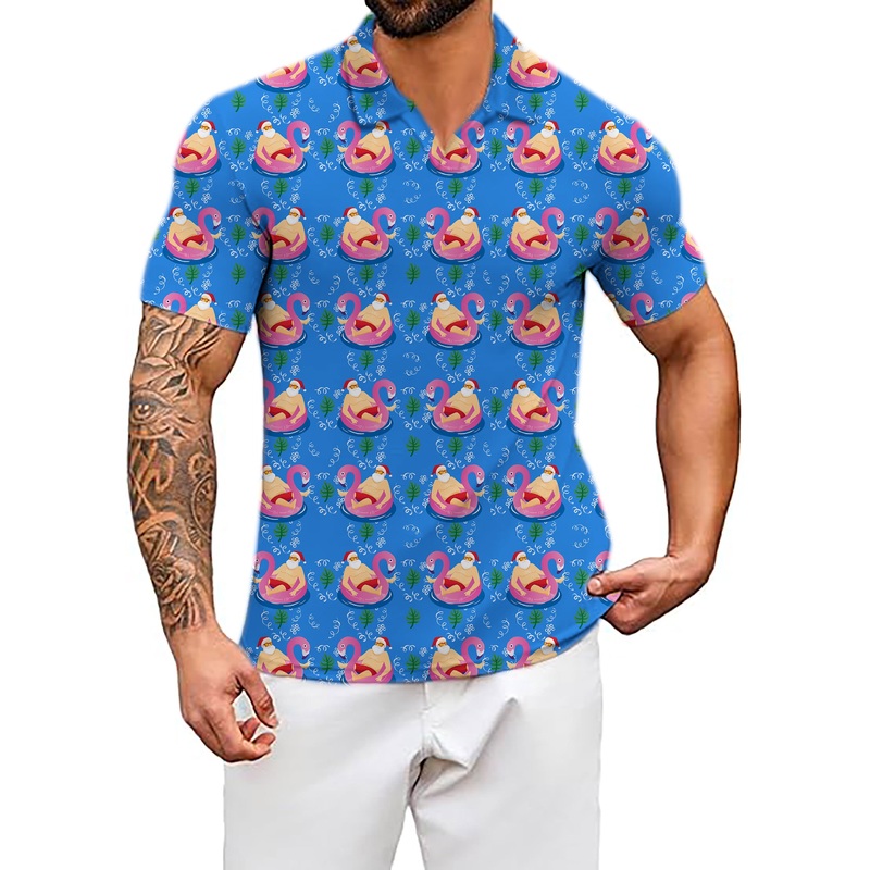 Men’s Santa Pool Party V Neck Golf Polo Shirts Christmas