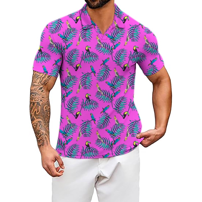 Men’s Tropical Oasis V Neck Golf Polo Shirts