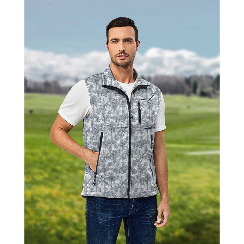 Men’s Twilight Palms Lightweight Softshell Vest Sleeveless Jacket for Golf Windproof Waterproof