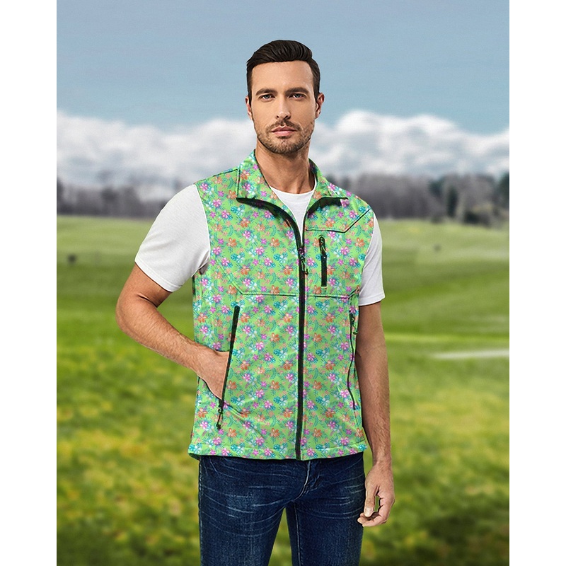 Men’s Vibrant Blossom Lightweight Softshell Vest Sleeveless Jacket for Golf Windproof Waterproof