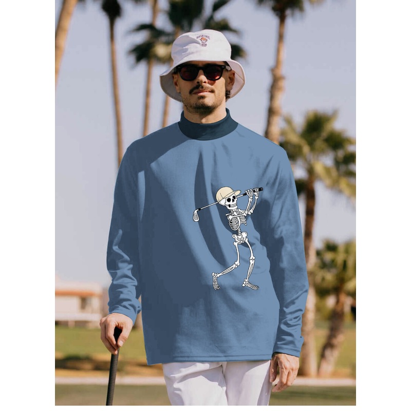 Men’s White Blue Halloween Skeleton Golf Pullover High neck Long/Short sleeve T-Shirt