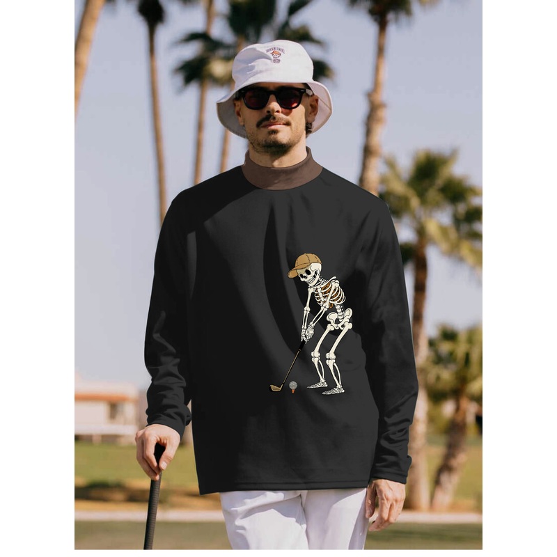 Men’s Yellow Black Brown Halloween Skeleton Golf Pullover High neck Long/Short sleeve T-Shirt