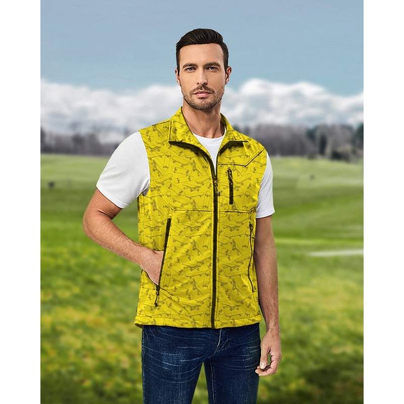 Men’s Yellow Skateboard Lightweight Softshell Vest Sleeveless Jacket for Golf Windproof Waterproof