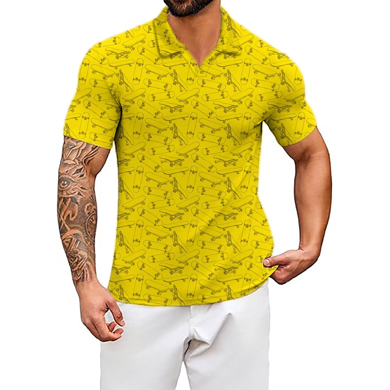 Men’s Yellow Skateboard V Neck Golf Polo Shirts