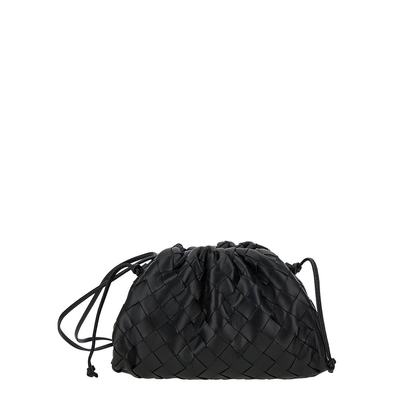 ‘Mini Pouch’ Black Crossbody Bag with Intreccio Motif in Leather Woman