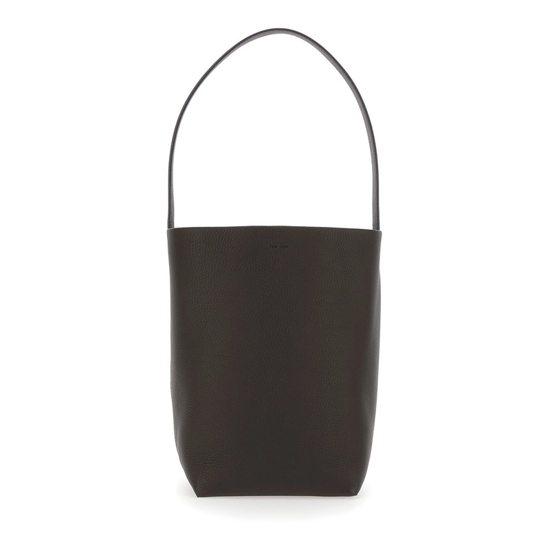 ‘N/S Park Medium’ Brown Shoulder Bag with Embossed Logo in Grained Leather Woman