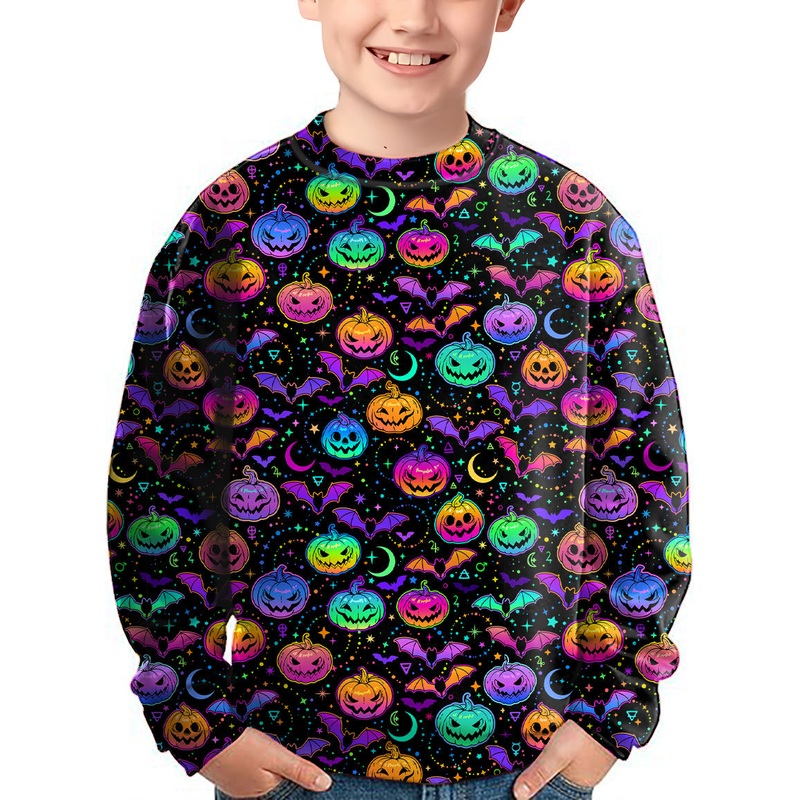Neon Halloween Pumpkin Crewneck Pullover Kids Ugly Sweater