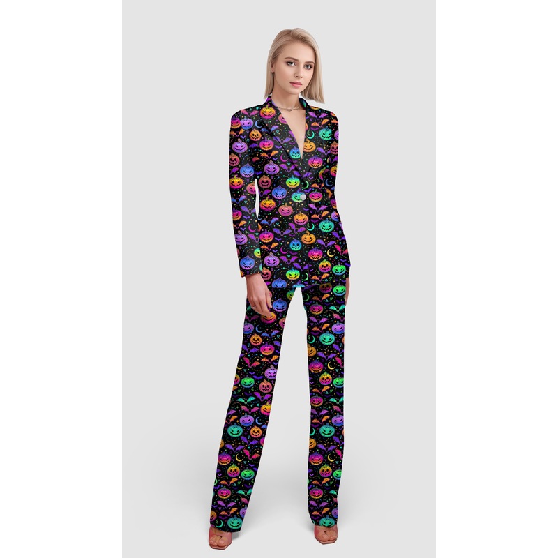Neon Halloween Pumpkin-Women’s Blazer Casual Work Office Blazer Suit set