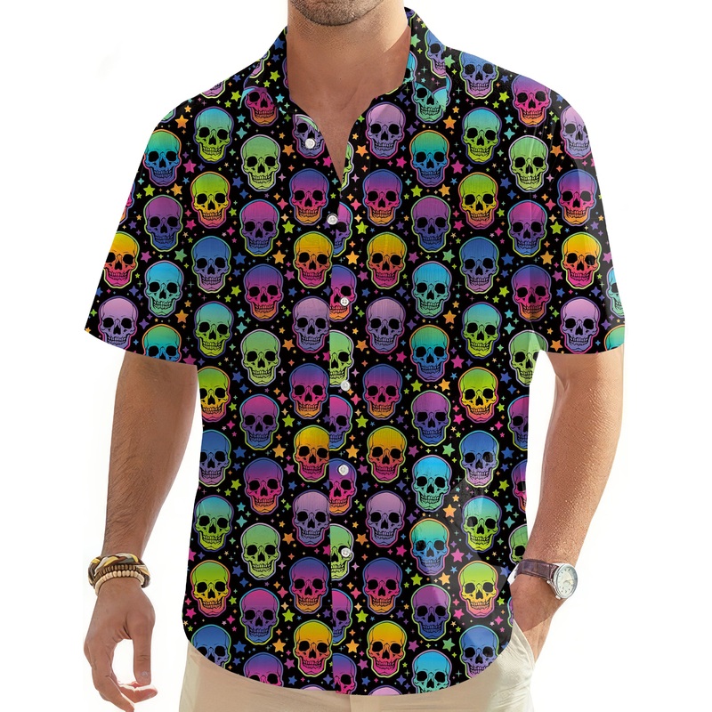 Neon Skulls-Men’s Golf Hawaiian Shirts Button Down Shirt