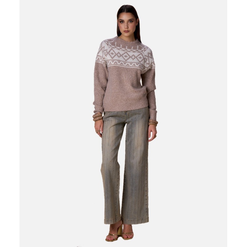 Raglan sleeve sweater with Norwegian jacquard graphics. The versatile design allows it to be easily paired with jeans, skirts, or dress pants, making it the perfect piece for any occasion, from day to night.