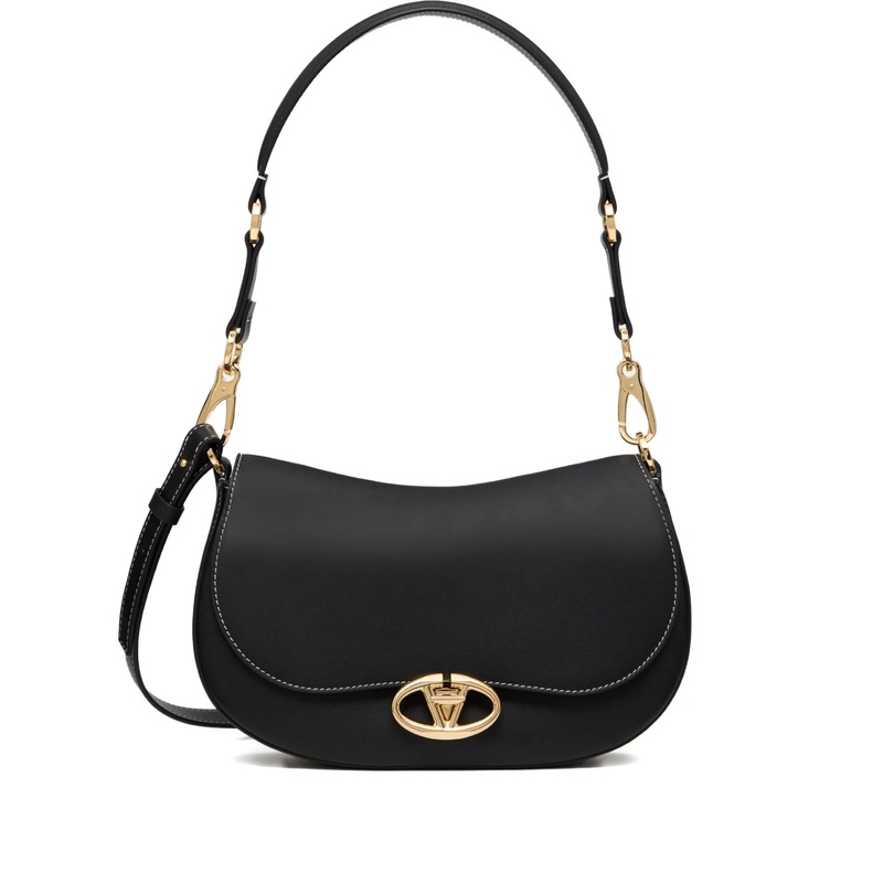 This stunning Valentino Garavani Ohval small shoulder bag is crafted from luxurious calfskin, offering both elegance and durability. The bag features a signature VLogo swivel and flap closure, ensuring your belongings are secure while adding a touch of sop