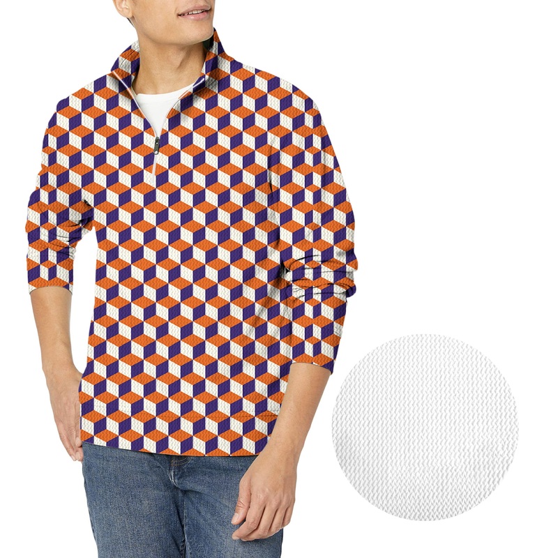 orange 3d square box-Men’s Golf Waffle Zipper Pullover