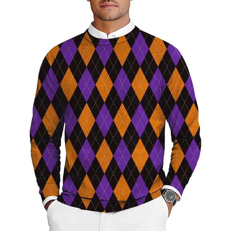Orange purple and black argyle Men’s Golf Crewneck Pullover Sweaters Ugly Sweater
