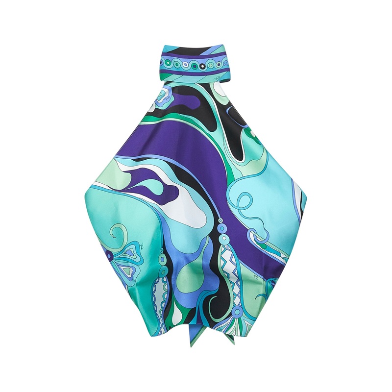Halterneck with self-ties at neck backSleevelessSelf-ties at backHandkerchief hem; asymmetric hemlineAll-over multicolor Orchidee printColor: multicolor100% SilkMade in Italy