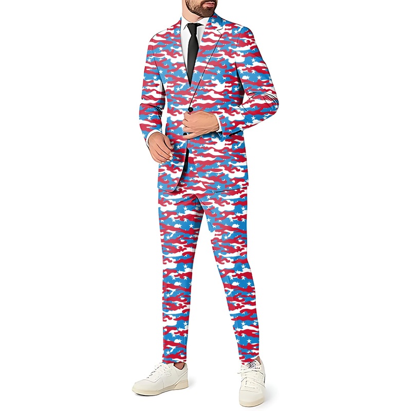 Patriotic Camo Men’s Party Costumes-Theme Party 2 or 3pcs Suit set-Blazer Pants & Vest