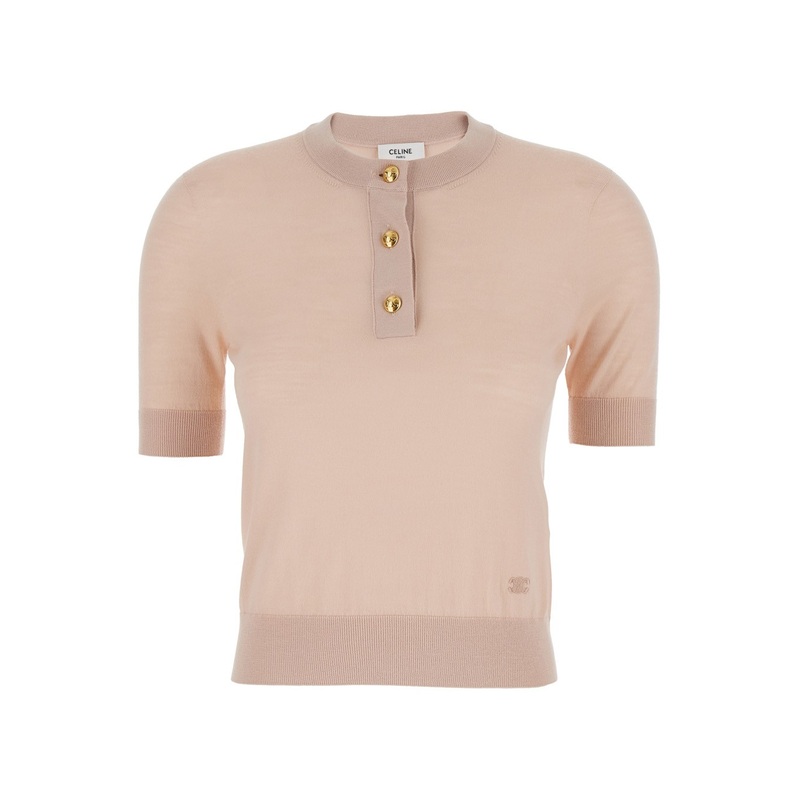 description" content=" sweater pink crewneck short sleeves front button closure triomphe embroidery on the front ribbed trims straight hem wool regular fit - Shop online on Gaude ...