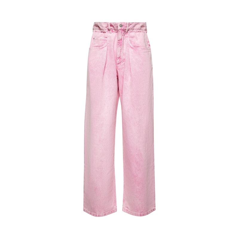 Front zip fly closure, metal logo buttonHigh paperbag waist with belt loops; adjustable inner elasticFive pocket modelLeather label with embossed Isabel Marant logo at back waistbandSingle front pleatWide legPink color80% Cotton, 20% HempMade in Extra EU