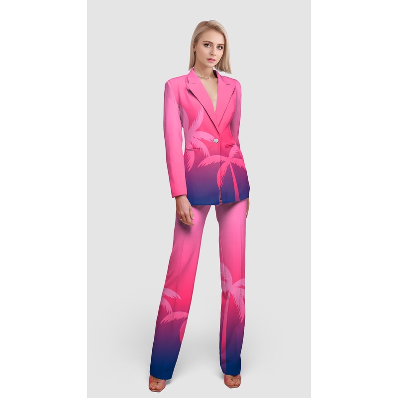 pink palm-Women’s Blazer Casual Work Office Blazer Suit set